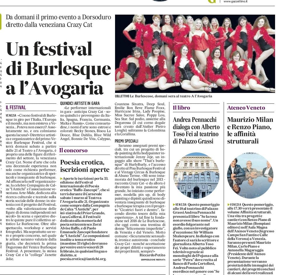 Il Gazzettino di Venezia dedica un articolo al Venice Burlesque Festival